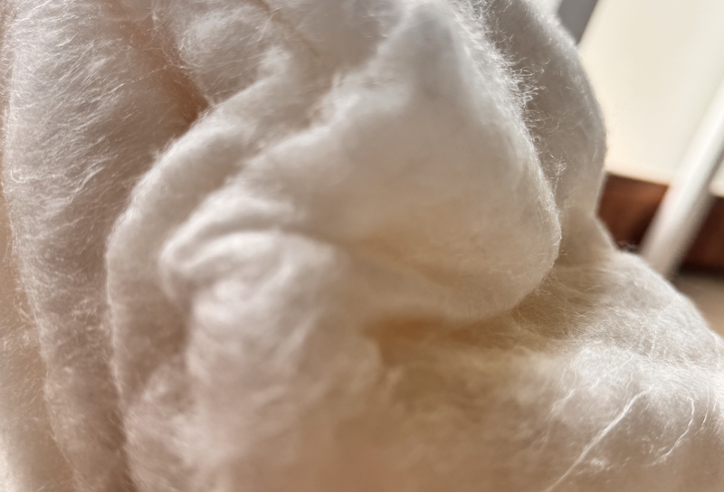 できあがった角真綿は、驚くほど艶があった。 軽く、あたたかく、しかし芯のある光沢。