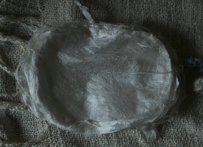 蛹になる前に繭玉を取る。 頭では理解してはいるが、実際に手を動かすと、どこかで申し訳なさが残る。 素材を得るということは、命をいただくということなんだな。