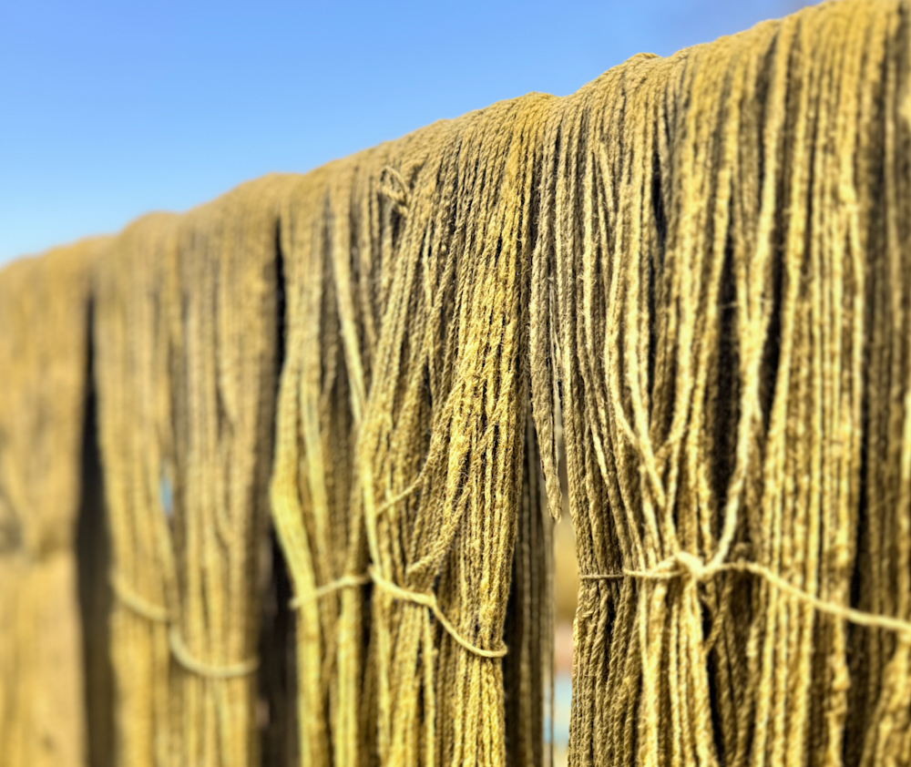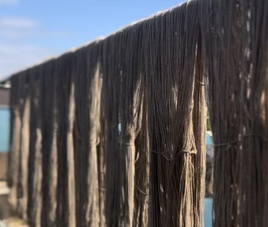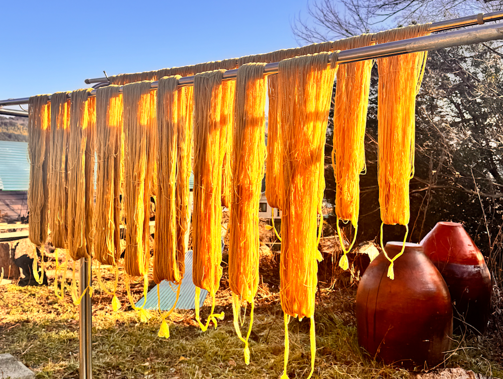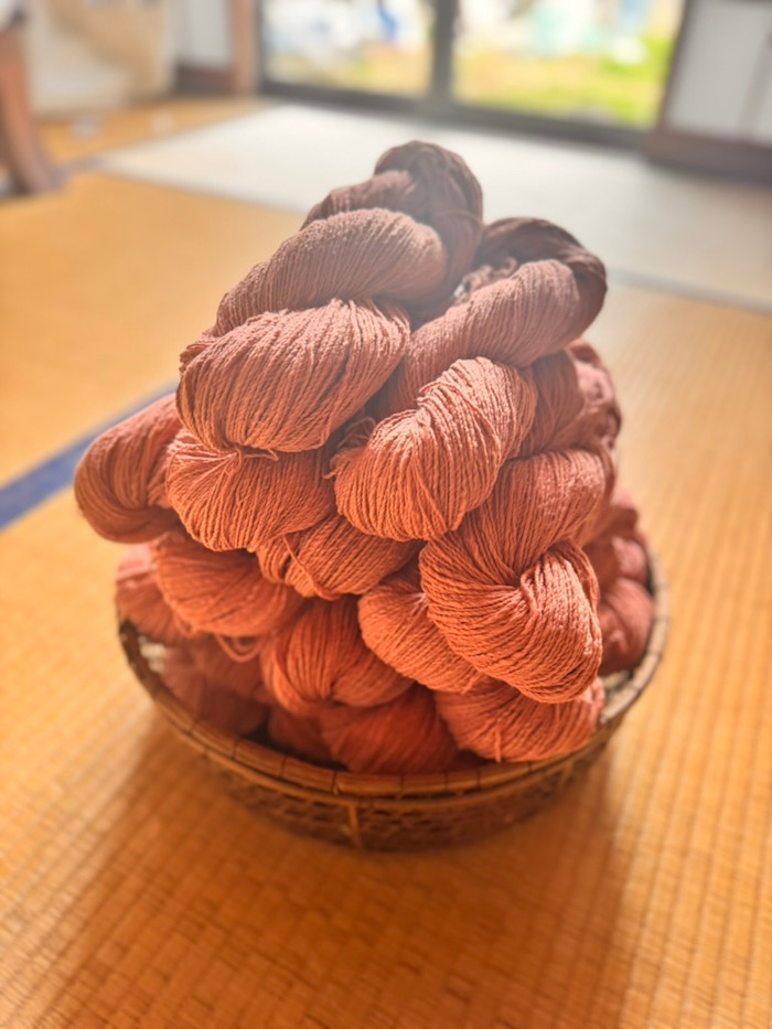 この冬は大甕が冬眠中で、藍染がまったくできない日々。 途方に暮れていた矢先、ありがたいことに植物染めによる 糸染めのご依頼をいただき、再び染め場に立つことができました。 西洋茜、黄檗、渋木皮、檳榔子、そして五倍子。 久しぶりの糸染めはやっぱり少し緊張します。